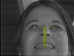 The line connecting the pupils and the center of the lips is marked in yellow (see Figure 1).